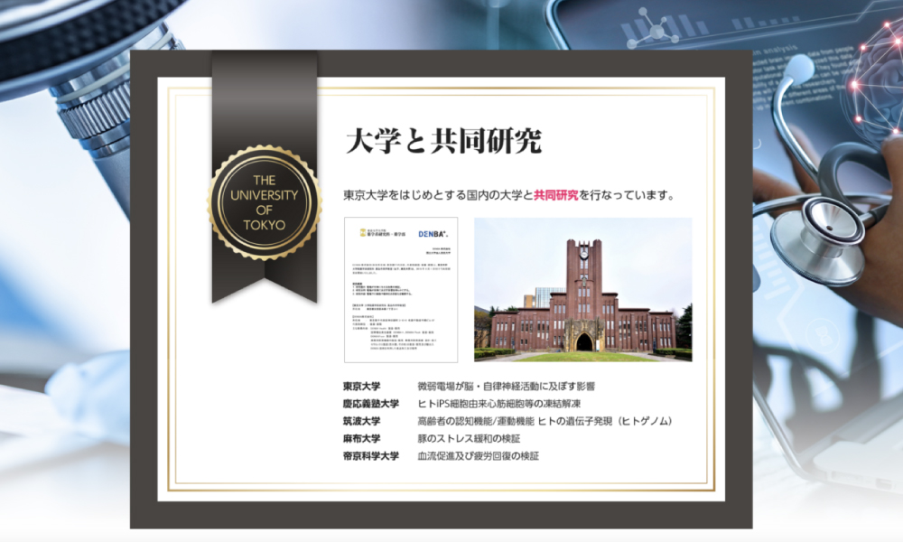 DENBAは、大学研究機関との共同検証を通して、実際に身体に起きている変化を“数字”で証明しています。
