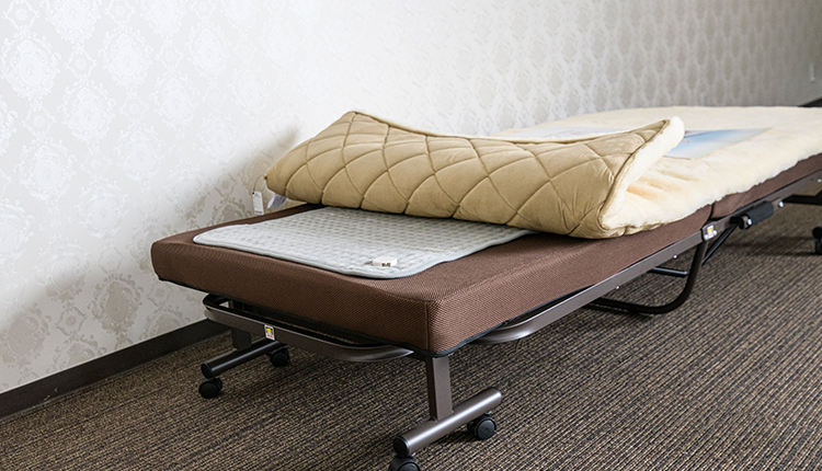 お部屋のベッド内部に、DENBA Health専用マットを設置。