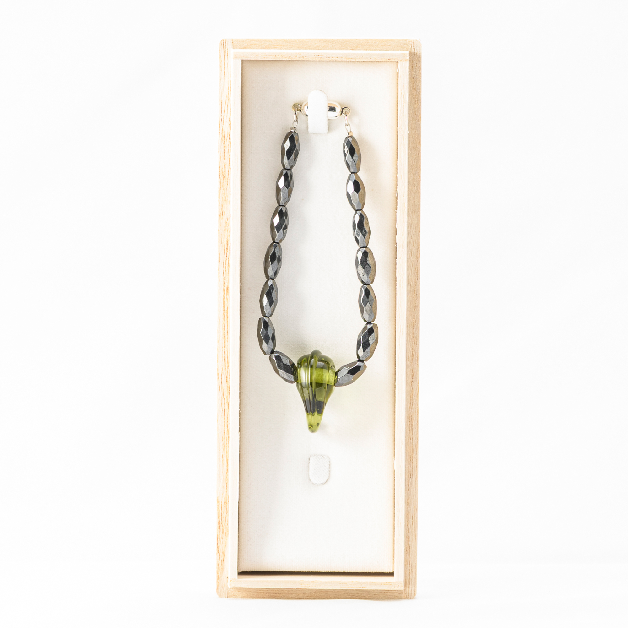 この禊ガラスを用いたブレスレット・ネックレスは、磁気の力を組み合わせ、